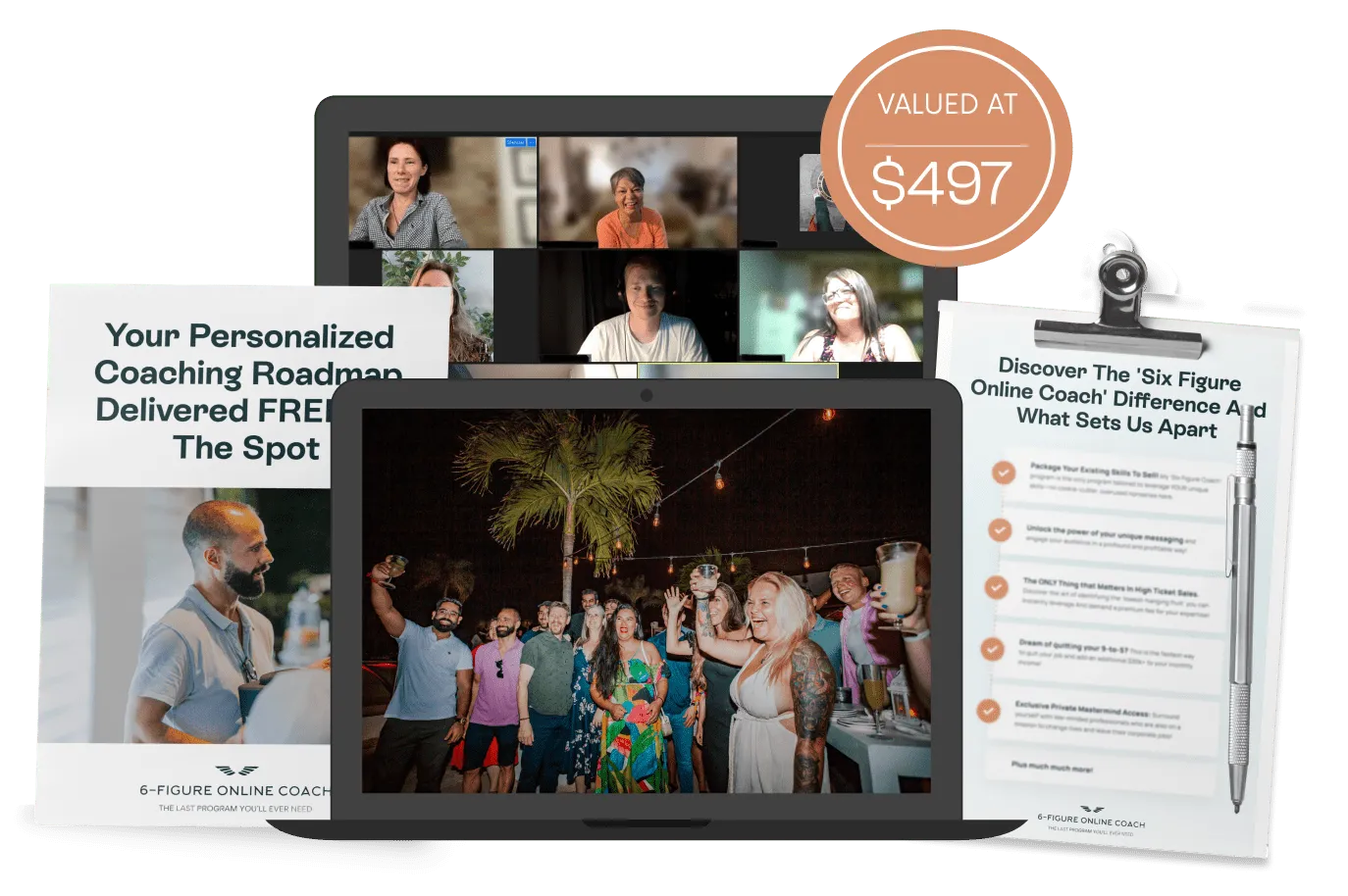 Take 30 seconds to fill in the form below and book a time that suits you. We’ll jump on a video call and discuss how the ‘six figure coach’ program can help you achieve the freedom and lifestyle you’ve always dreamed about. There is no cost or obligation for this session.